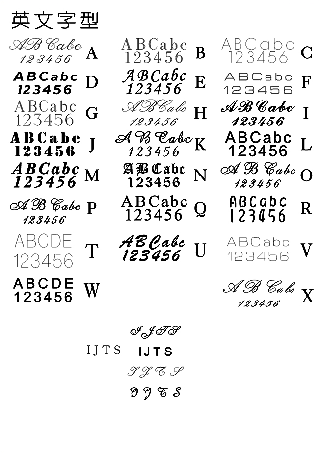 (告知刻字文字,字型樣式會傳送給您,為加快對稿作業,以2種字型為限!!)