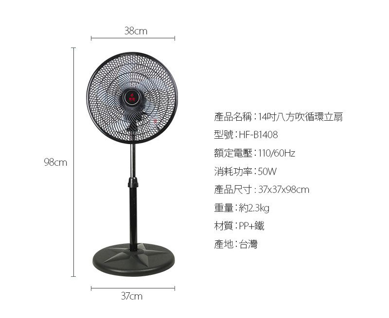 >勳風 SUPA FINE AC落地扇 八方吹 循環 扇 14吋 /台 HF-B1408