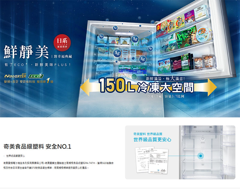 ◎有效容積:498L / 冷藏室 348L/ 冷凍室 150L
