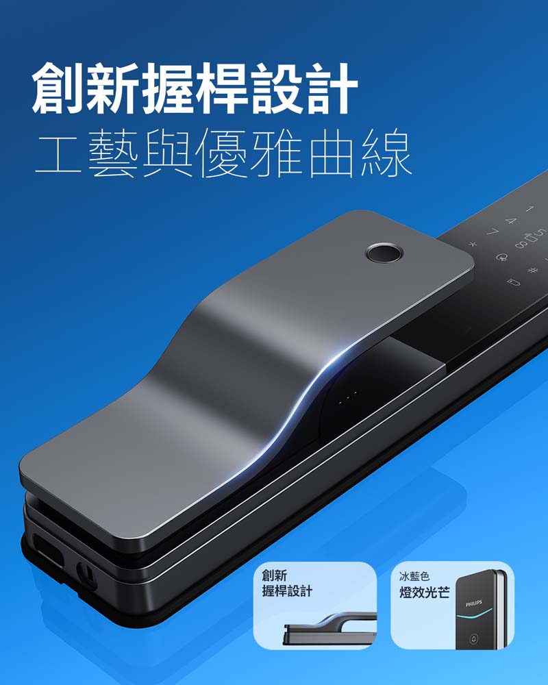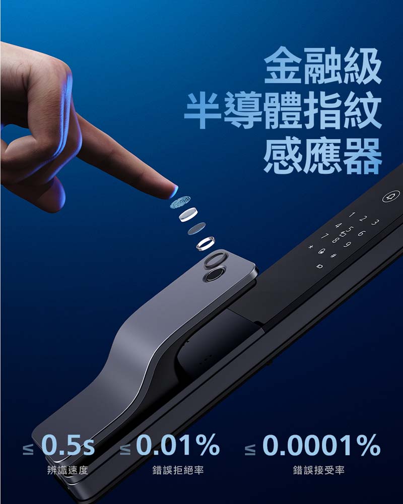 採用半導體指紋感應器,辨識速度不超過 0.5 秒,當您握住把手時,手指會自然落在指紋掃描器上。