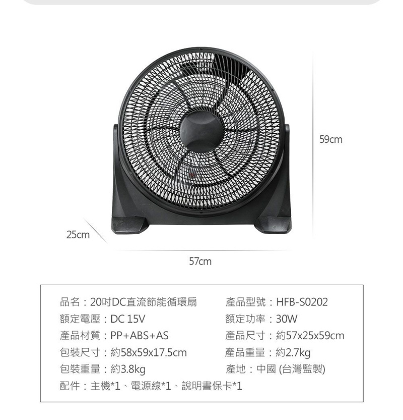 產品名稱:勳風 20吋 DC直流循環扇