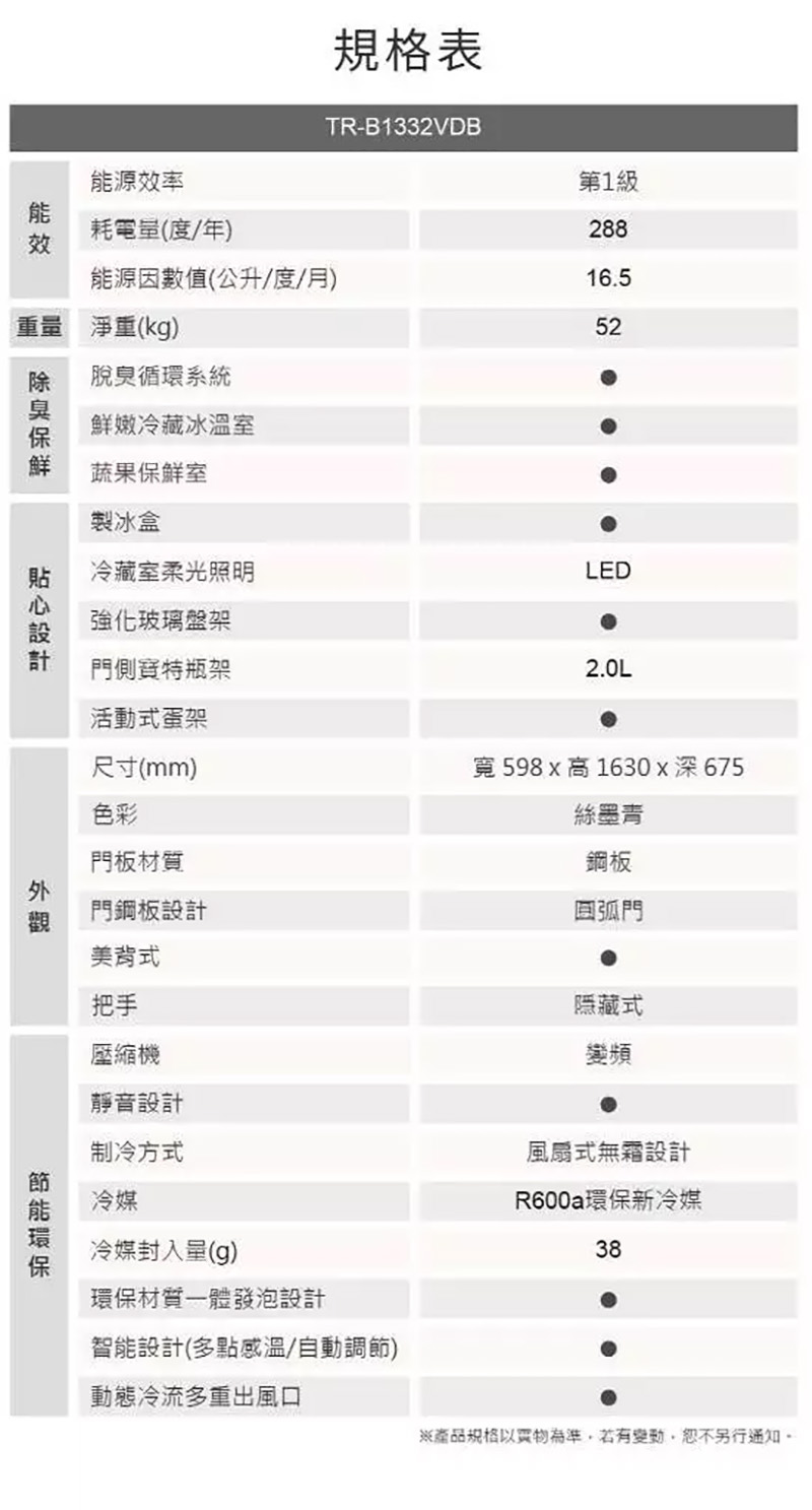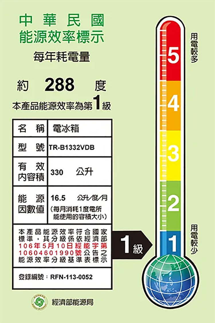 TATUNG大同 330L一級能效變頻雙門冰箱 墨青 /台 TR-B1332VDB