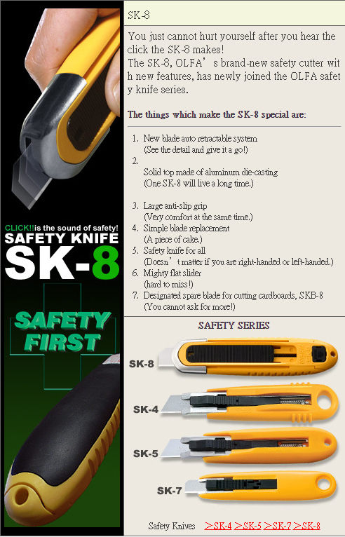日本 OLFA 新型安全工作刀 /支 簡易塑膠袋裝 SK-8/24