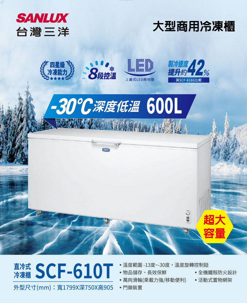 >SANLUX台灣三洋 600公升-30℃超低溫上掀直冷式冷凍櫃 /台 SCF-610T