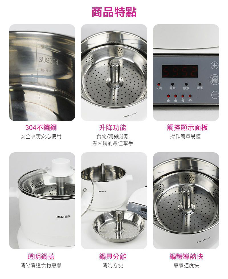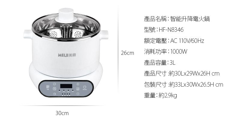 產品名稱:美緻 微電腦3L升降電火鍋