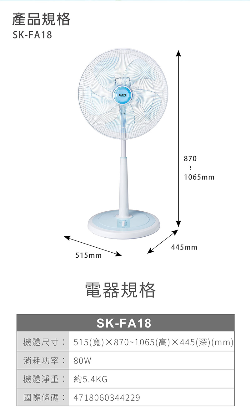 >SAMPO聲寶 18吋機械式立扇 /台 SK-FA18