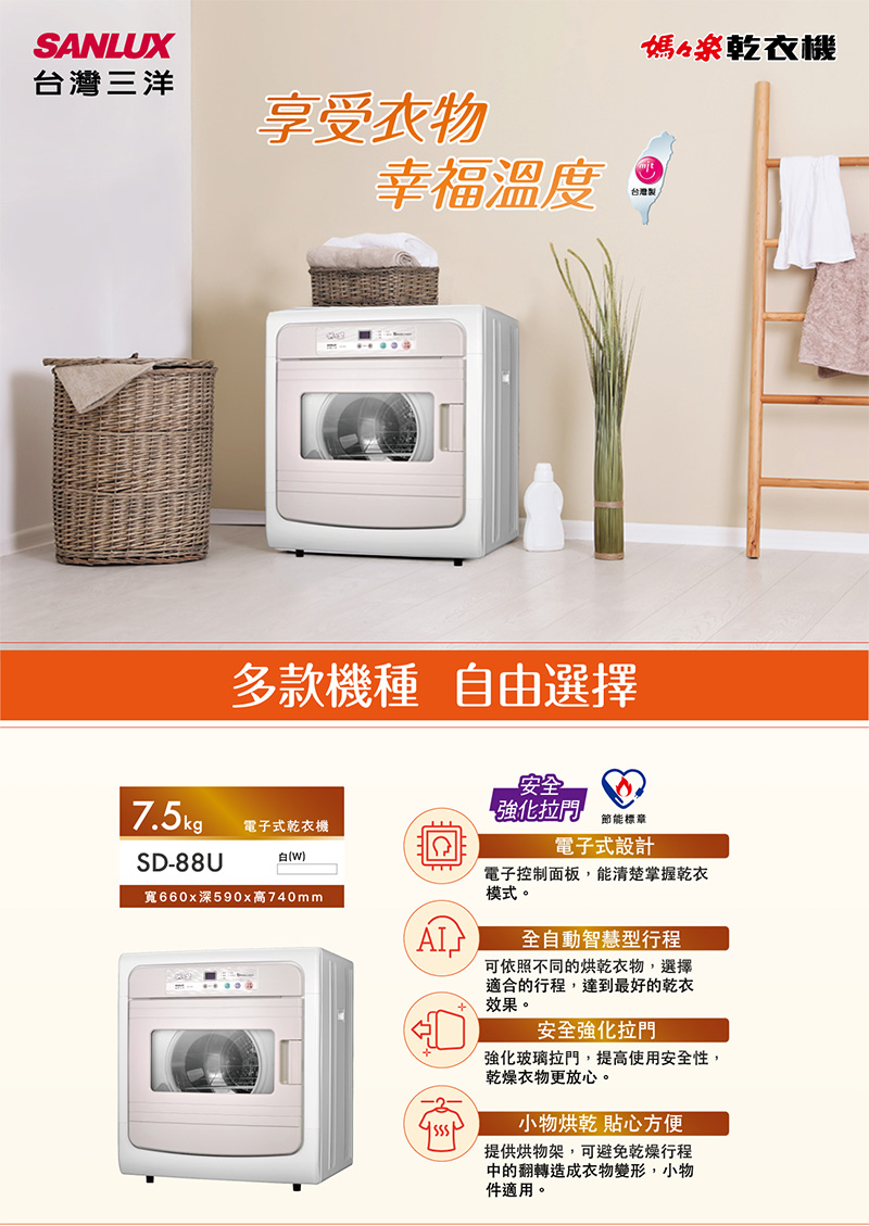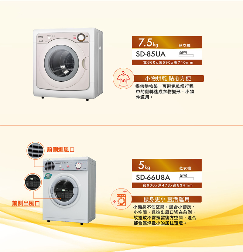 >SANLUX台灣三洋 7.5KG 乾衣機 /台 SD-85UA