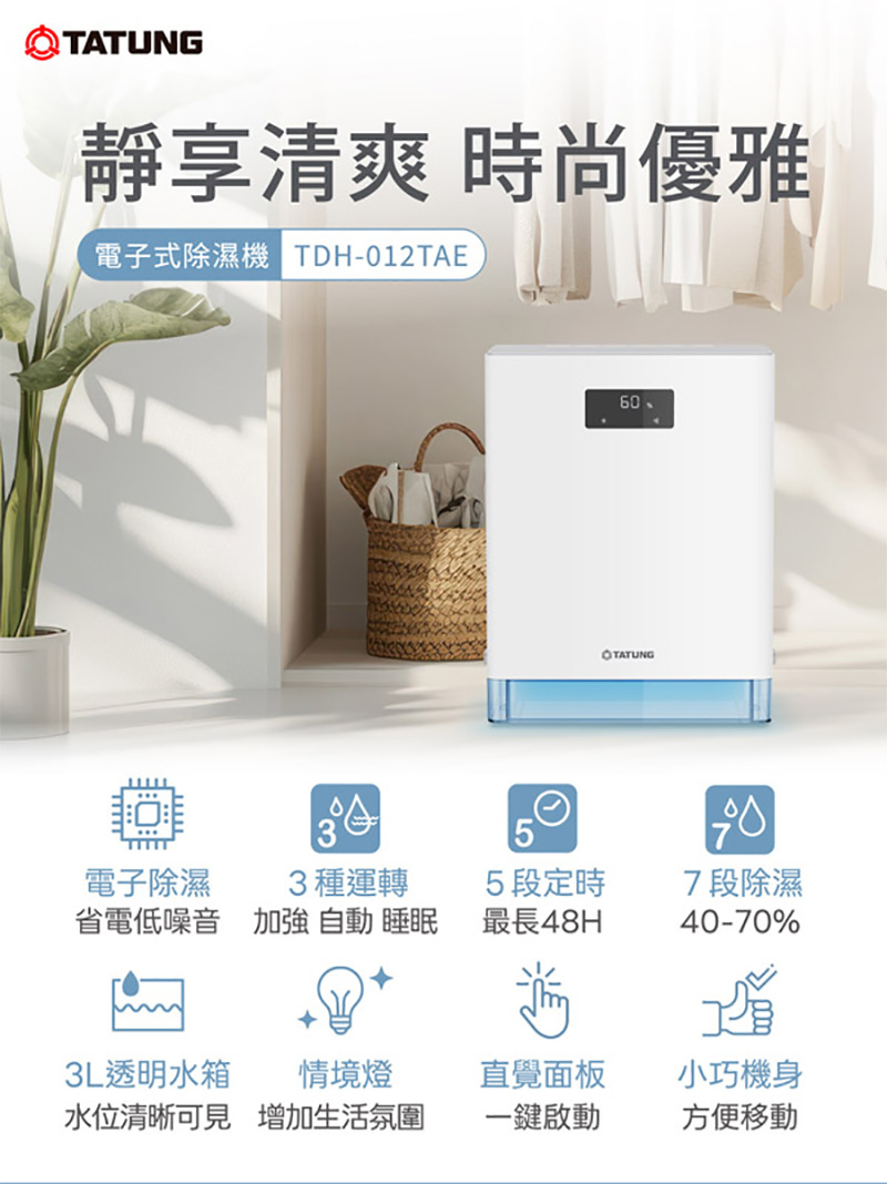 >TATUNG大同 電子式除濕機 /台 TDH-012TAE