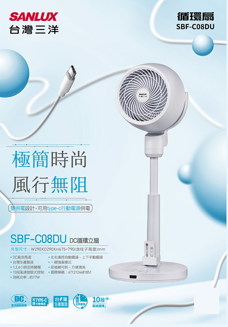 >SANLUX台灣三洋 8吋 DC循環扇 /台 SBF-C08DU