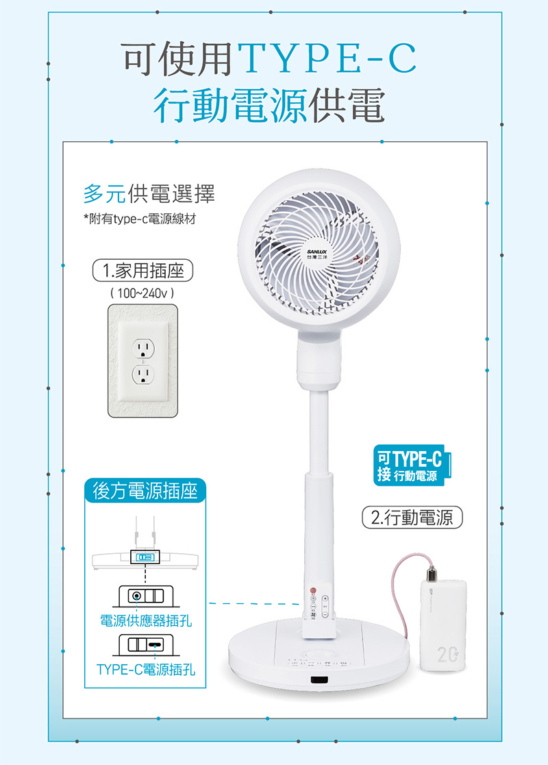 ◎雙供電設計,可使用行動電源供電(附type-c線材)