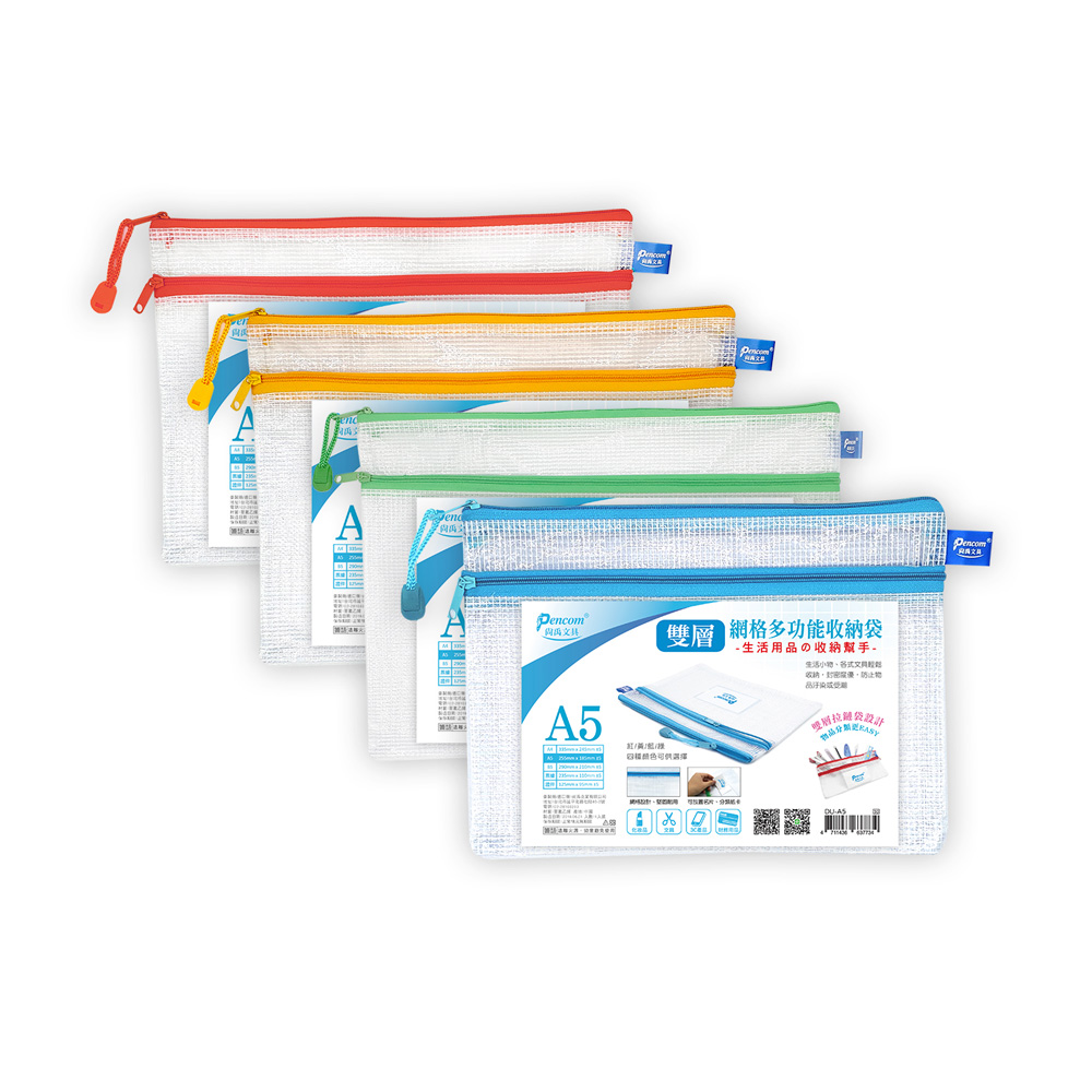 【商品介紹】 型號:DU-A5 單位:12個/包 顏色隨機出貨 雙層拉鍊袋設計,附名片袋,收納方便,多種顏色,便於分類。 尺寸:約255 X 185mm