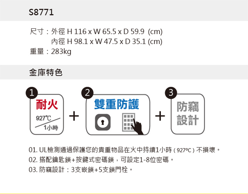 台灣金庫王的母公司世如金屬成立於1978年,秉持著研發最好的產品帶給顧客世代如意的信念,三十多年來深耕台灣,專研各式行動管理箱,掌握一貫化專業製造技術。2008年台灣金庫王引進美國防火金庫第一品牌 SentrySafe,SentrySafe通過防火、防水、耐摔科學測試,取得全球知名產品安全測試認證機構 UL (Underwriters Laboratories) 認證,台灣金庫王為SentrySafe在台唯一代理,為台灣行動管理箱及保險櫃開拓嶄新的疆界。