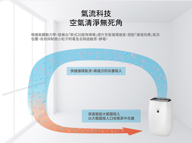 獨立空氣清淨運轉模式(斜20度角康達氣流)自動調節風量淨化