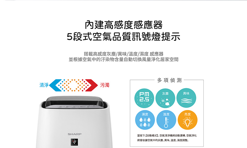 搭載高感度灰塵、異味、亮度、溫度&濕度感應器