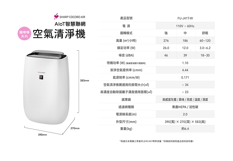 額定功率(W):強/26,中/12 ,舒眠*/3.0~6.2(*根據污染物自動切換)