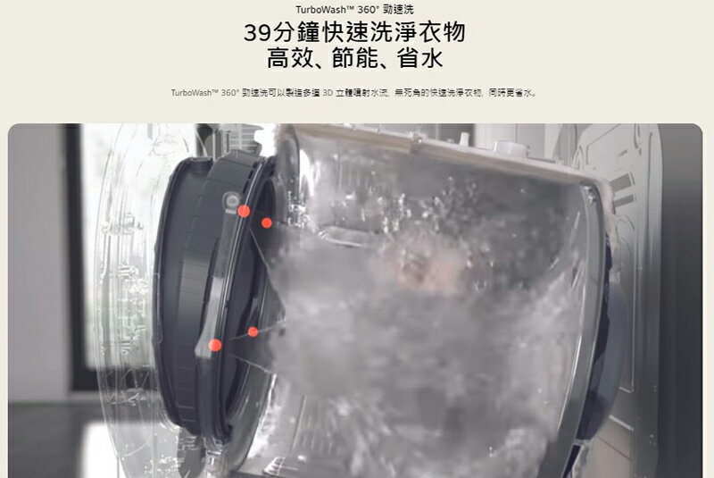 TurboWash? 360° 勁速洗 39 分鐘快速洗淨衣物