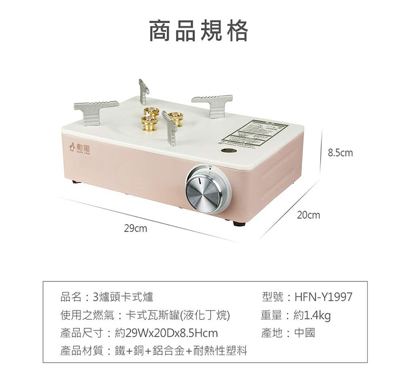 產品名稱:勳風 三爐頭磁吸式強火卡式爐