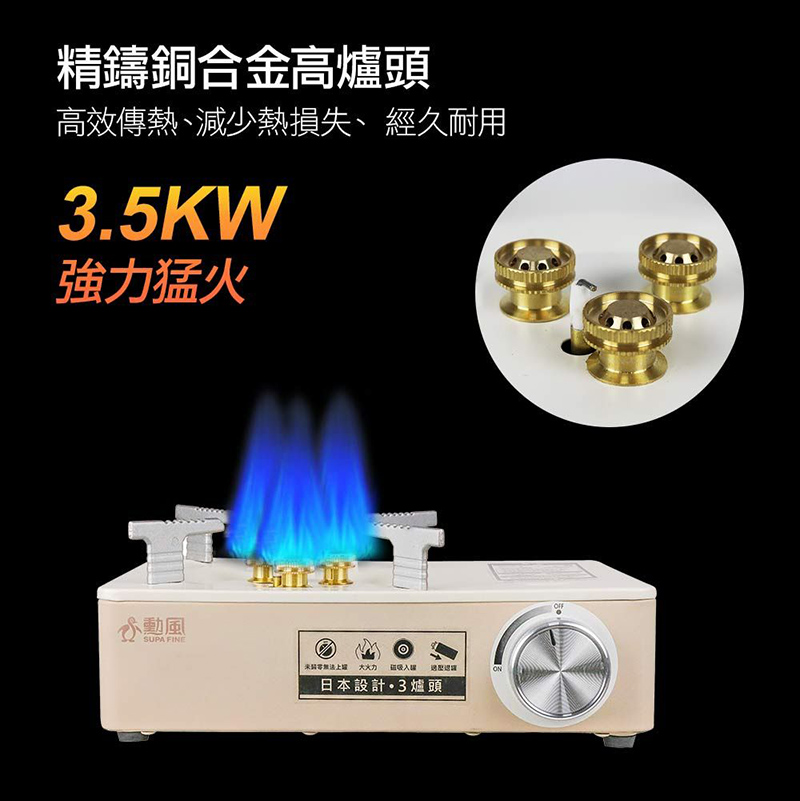 >勳風 SUPA FINE 三爐頭 磁吸式 強火 卡式爐 3.5KW (贈白色提箱) / 台 HFN-Y1997
