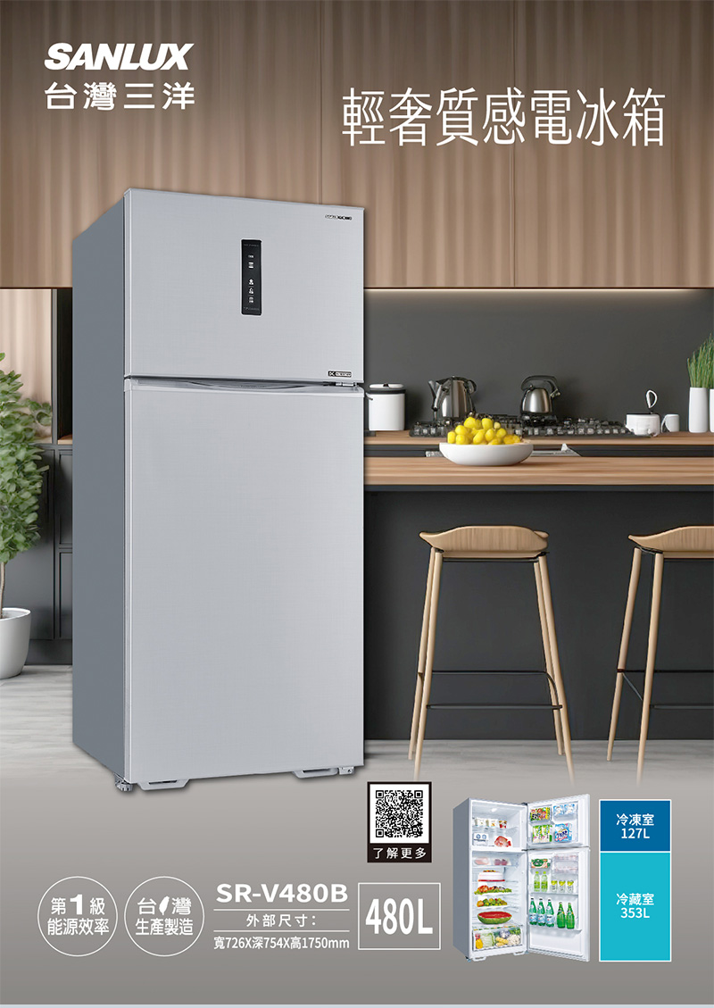 >SANLUX台灣三洋 480公升 一級能效 變頻雙門冰箱 /台 SR-V480B