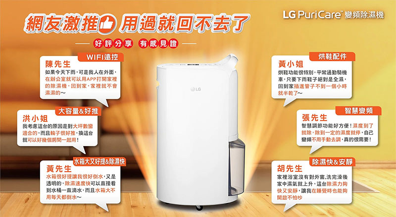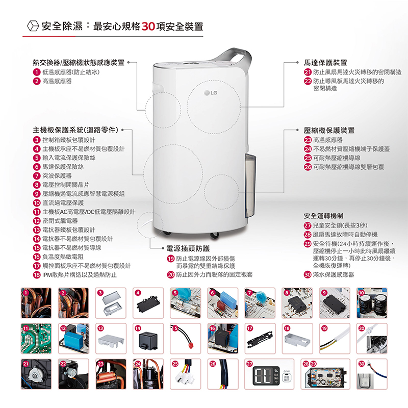 30項安全裝置 | WiFi遠控功能 | 17公升/日除濕量