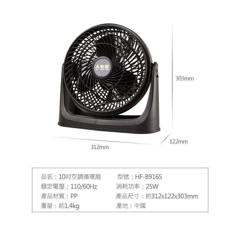 >勳風 SUPA FINE AC 空調 循環扇 三檔風速 10吋 /台 HF-B916S