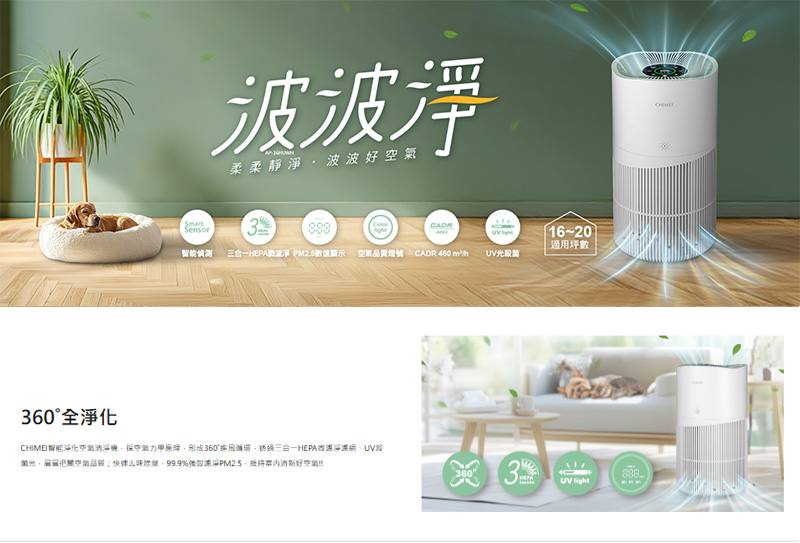 >奇美 CHIMEI 16-20坪 360?全淨化 DC省電 空氣清淨機 /台 AP-16HUWH