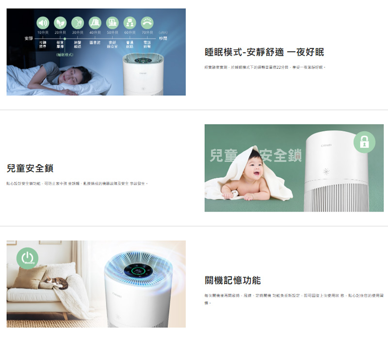 ●帶有兒童鎖,開關/定時/模式(睡眠/自動/手動/三檔切換)