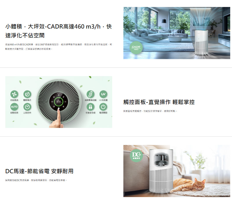 ●採用空氣力學原理:360度進風設計,下進風、上出風,快速淨化空氣