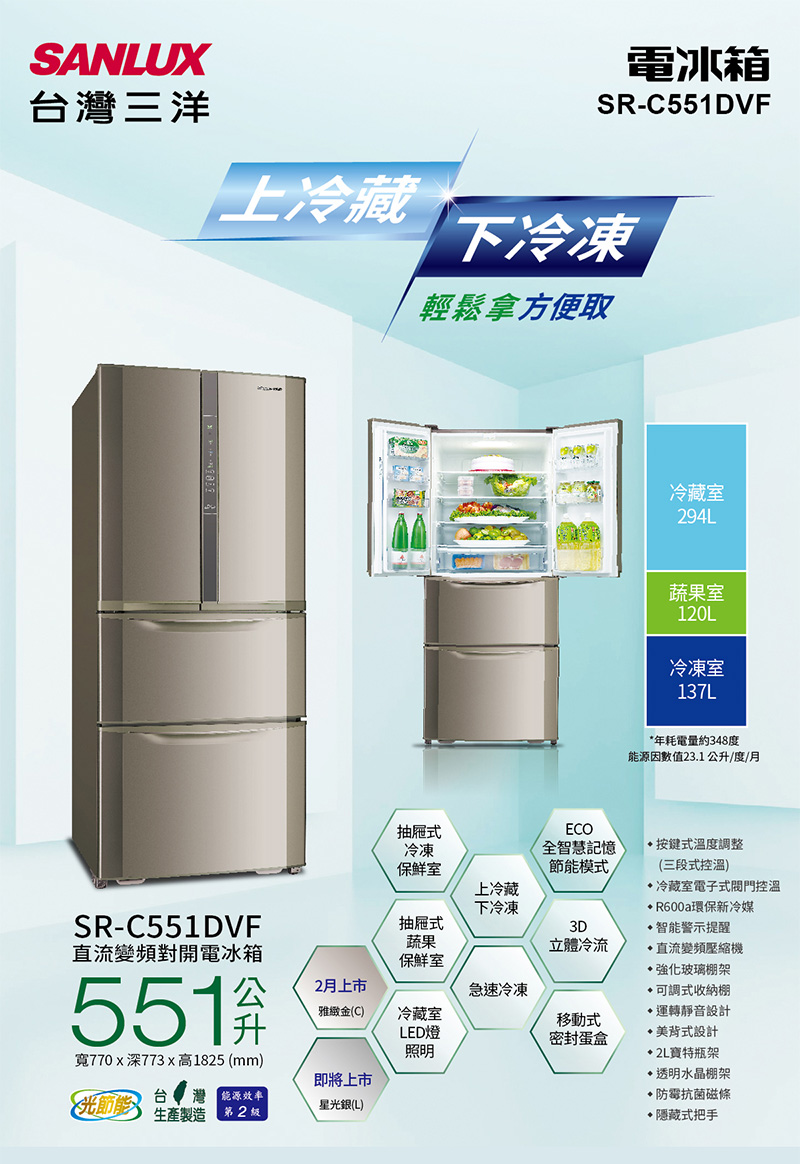 >SANLUX台灣三洋 551公升 一級能效 變頻四門冰箱 /台 SR-C551DVF