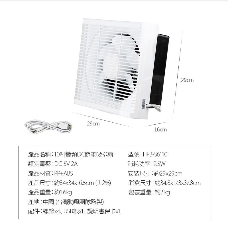 產品名稱:勳風 10吋DC節能吸排扇