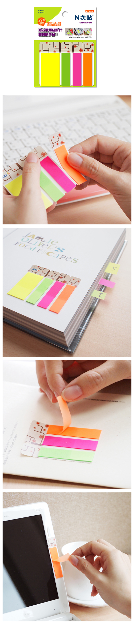 ◎品 名:N次貼 66525 隨身型可再貼透明標籤 45x15mm+45x25mm,螢光4色