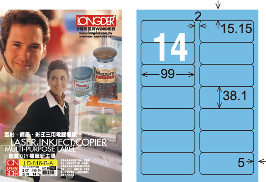 商品名稱:龍德 LD-816-B-A A4三用電腦標籤 淺藍色 / 盒