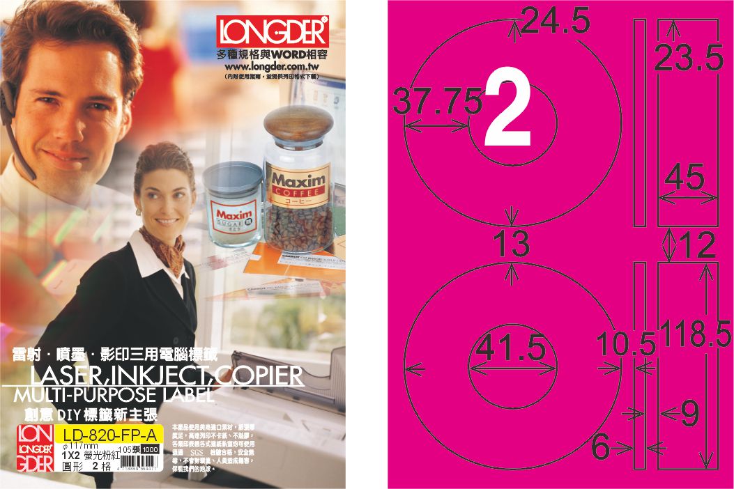 商品名稱:龍德 LD-820-FO-A A4雷射影印標籤 螢光粉紅 / 包