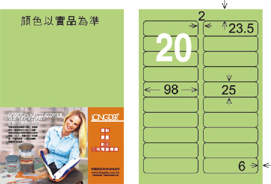 >龍德 LD-812-G-C A4三用電腦標籤 淺綠色 / 包