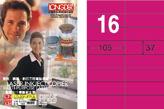 商品名稱:龍德 LD-801-FP-A A4雷射影印標籤 螢光粉紅 / 盒
