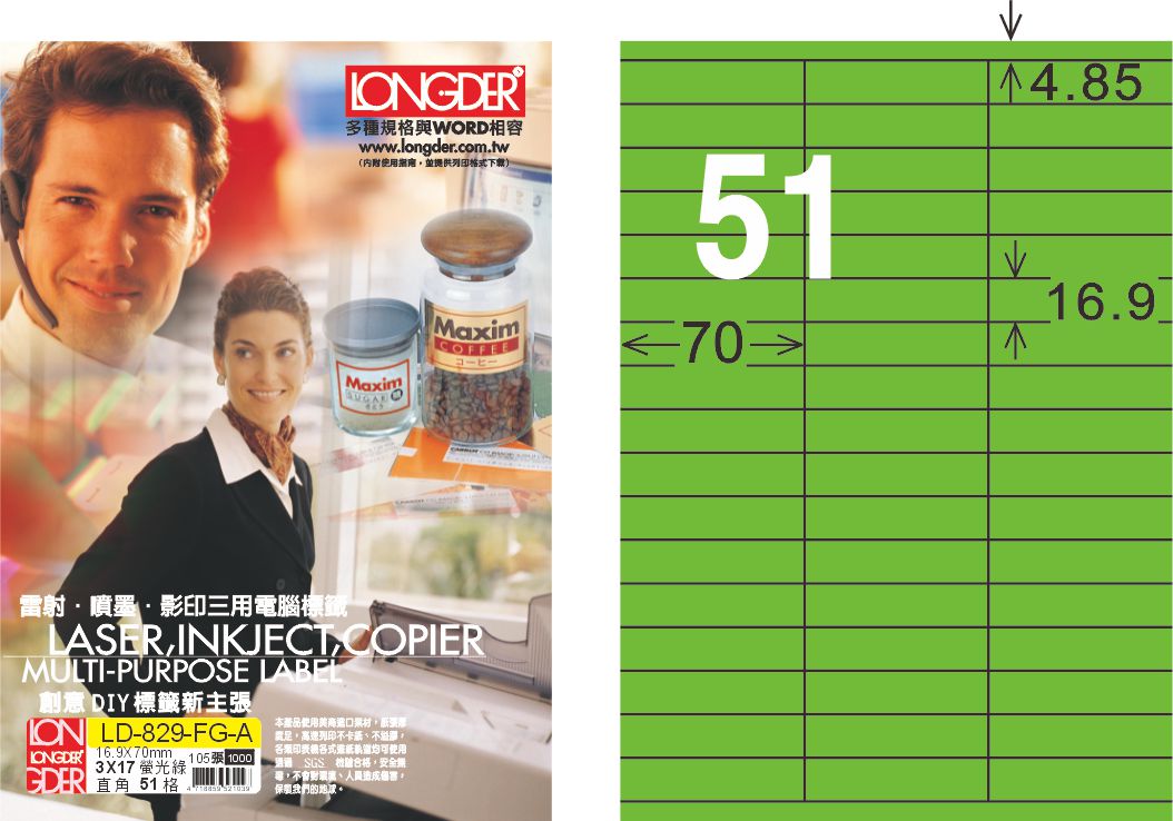 >龍德 LD-829-FG-A A4雷射影印標籤 螢光綠 / 盒