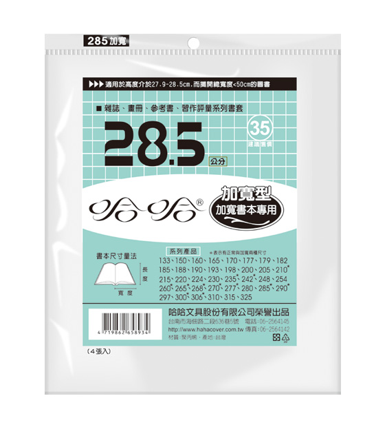 ◎ 品 名:哈哈書套 BC285B 傳統塑膠PP書套 28.7 x 50cm 雜誌.畫冊.參考書.
