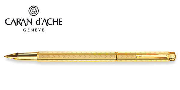 ◎ 品 名:CARAN d'ACHE 瑞士卡達 ECRIDOR 艾可朵V型麥紋鋼珠筆(鍍金GLIT)