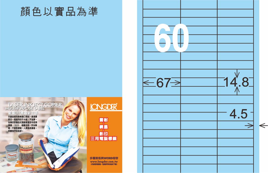 商品名稱:龍德 LD-844-B-C A4三用電腦標籤 淺藍色 / 包