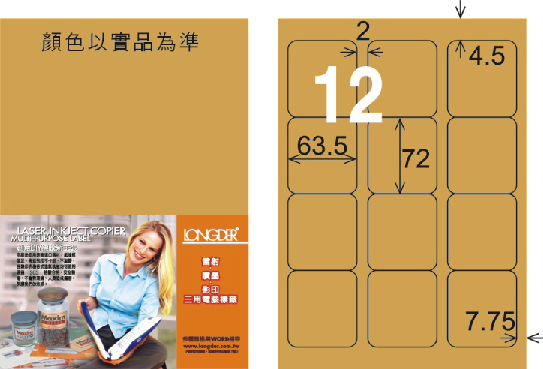 商品名稱:龍德 LD-815-M-C A4雷射影印標籤 金色 / 包