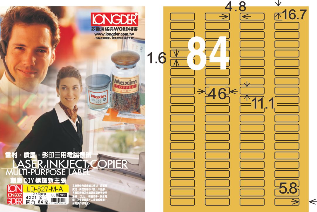 商品名稱:龍德 LD-827-M-A A4雷射影印標籤 金色 / 盒