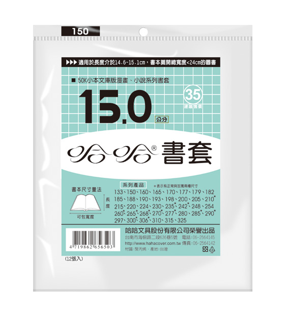 ◎ 品 名:哈哈書套 BC150 傳統塑膠PP書套 15.3 x 24.5cm 50K小本文庫版漫畫適用