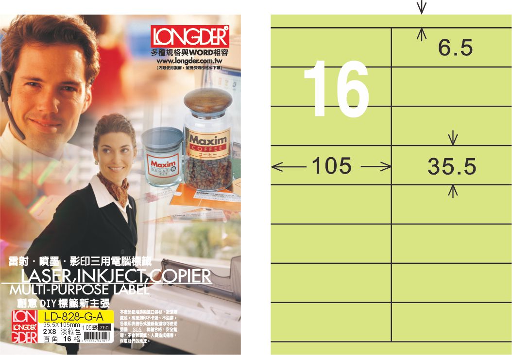 商品名稱:龍德 LD-828-G-A A4三用電腦標籤 淺綠色 / 盒