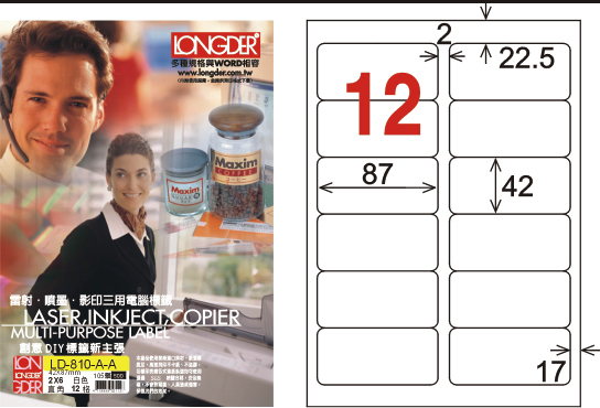 >龍德 LD-810-A-A A4雷射影印標籤 白銅版 / 盒