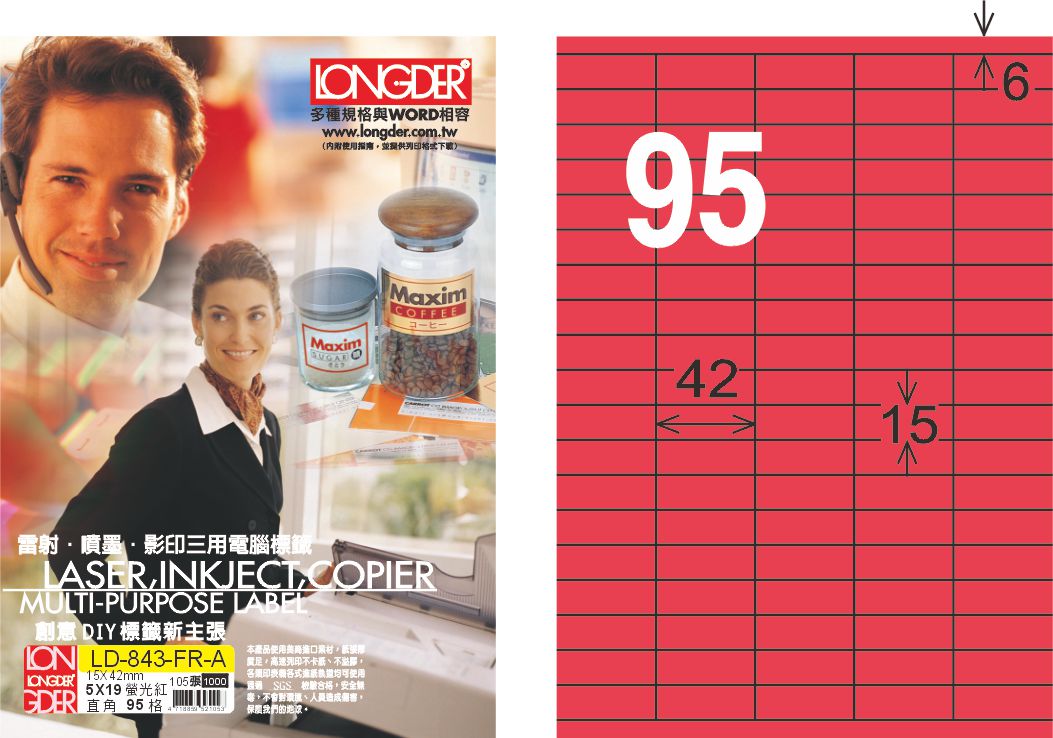 商品名稱:龍德 LD-843-FR-A A4雷射影印標籤 螢光紅 / 盒