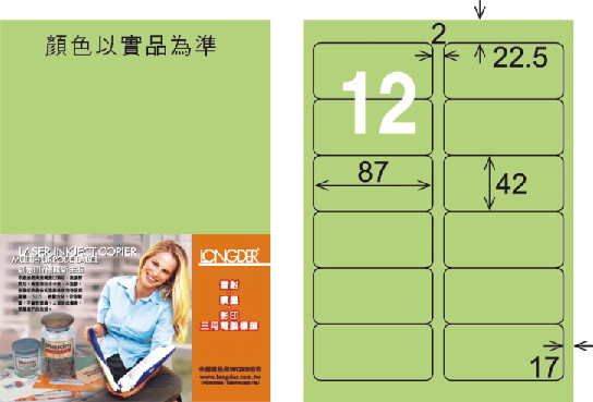 >龍德 LD-810-G-C A4三用電腦標籤 淺綠色 / 包