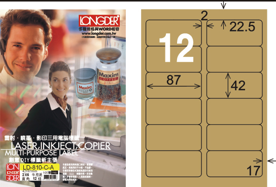 龍德 LD-810-C-A A4三用電腦標籤 牛皮紙 / 盒