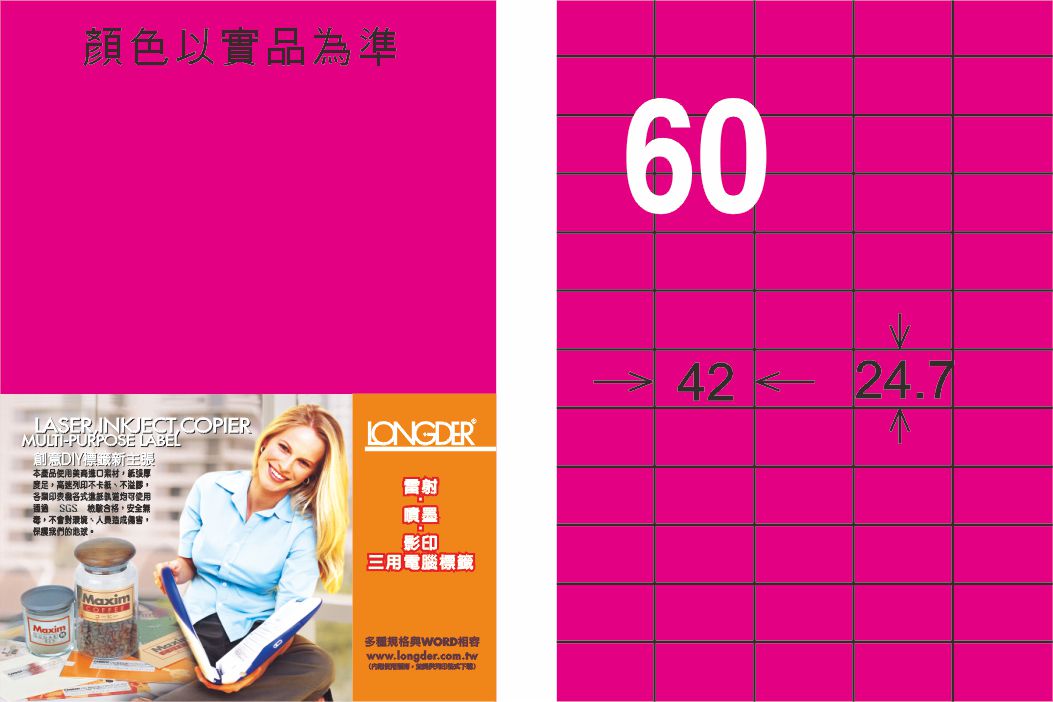 商品名稱:龍德 LD-839-FP-C A4雷射影印標籤 螢光粉紅 / 包