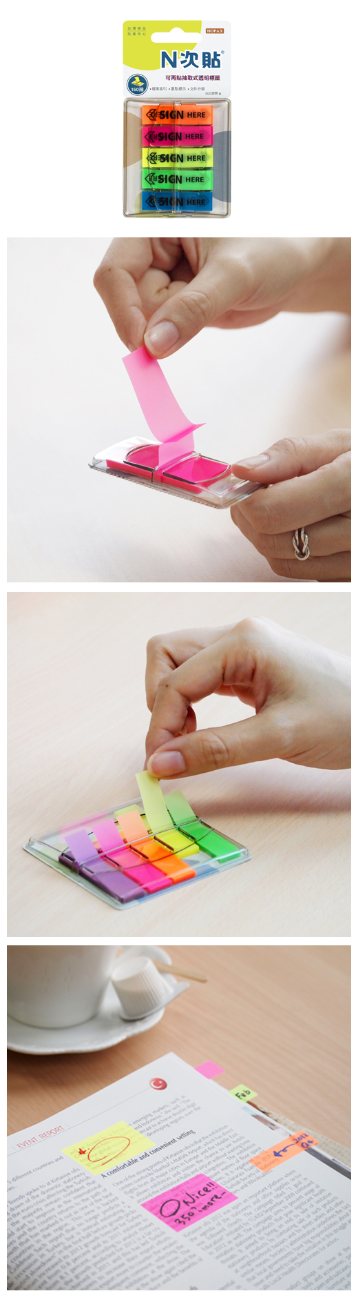 黏在桌上,分類文件更順手; 黏在記事本,攜帶更便利!