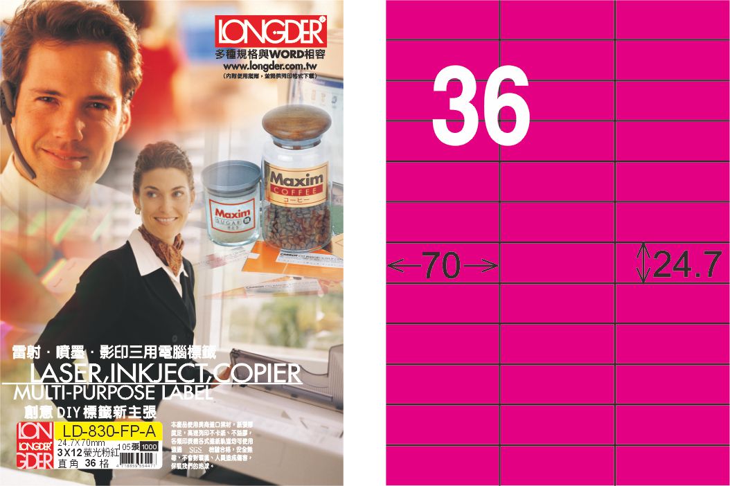 >龍德 LD-830-FP-A A4雷射影印標籤 螢光粉紅 / 盒